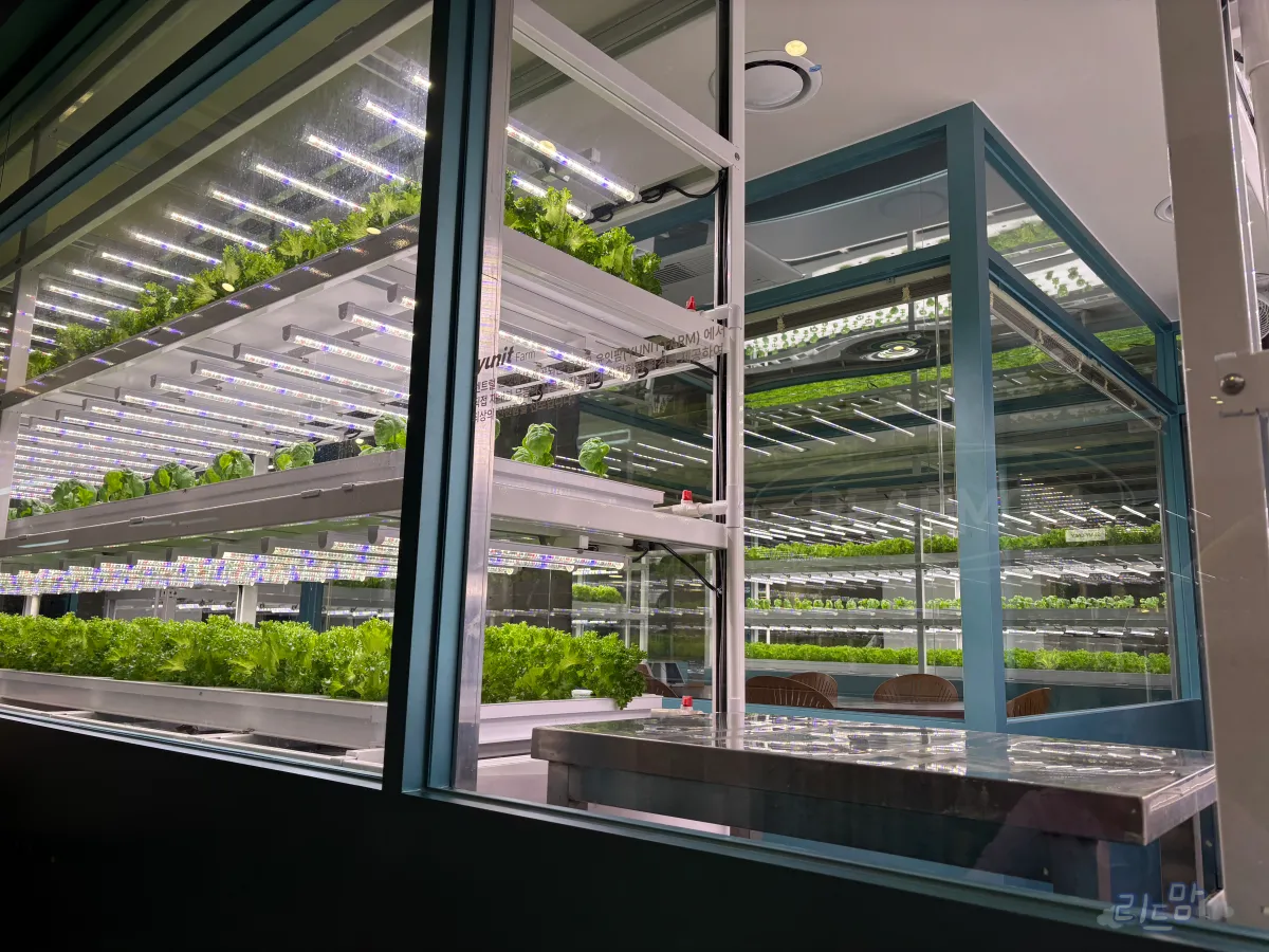신기하게 상추 같은 야채들을 내부 유리장 안에서 키우고 있었다.