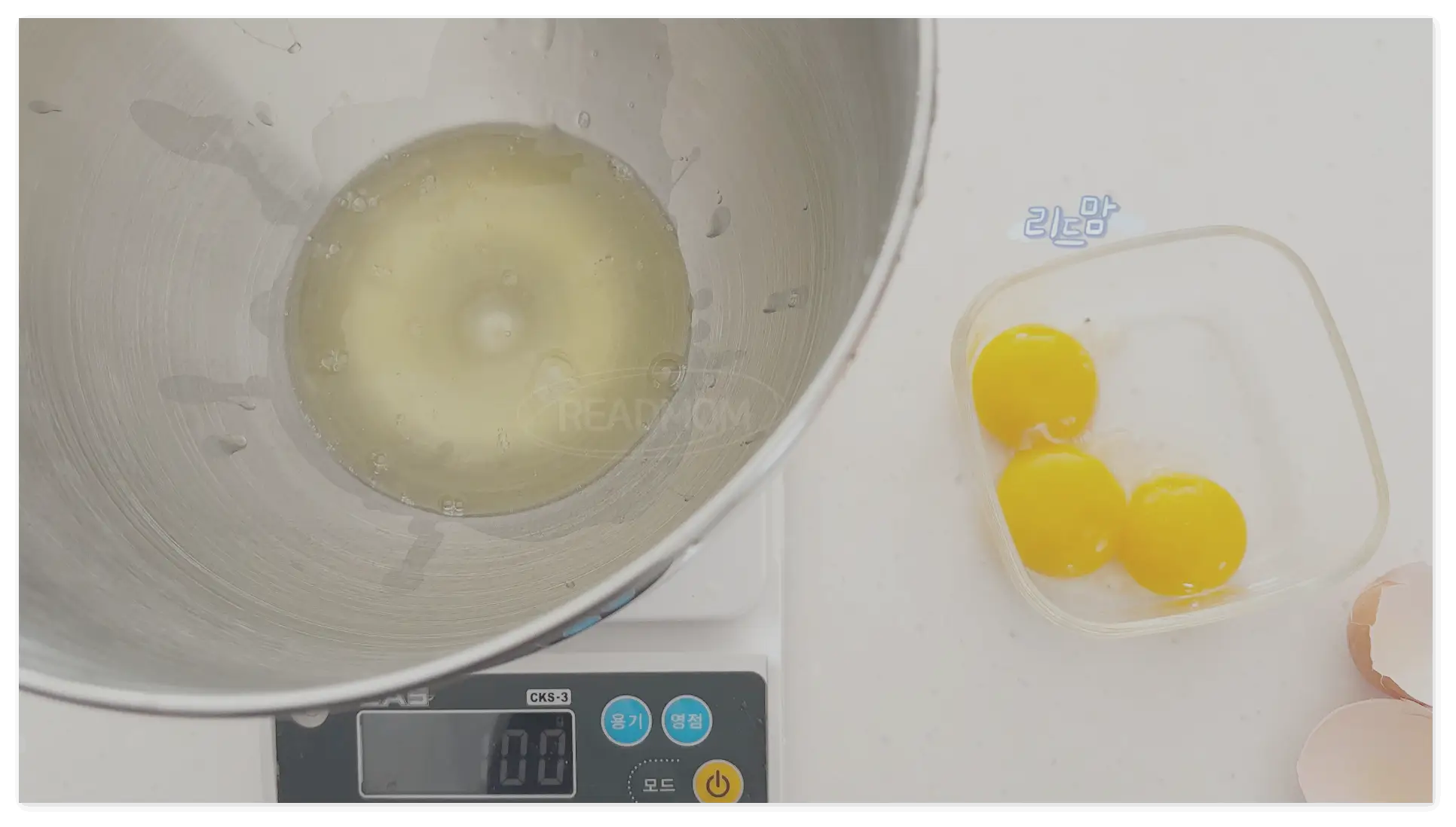 달걀의 크기에 따라 그람수가 달라져서 달걀흰자 그람수를 기준으로 다른 재료들 양을 바꾸어 사용하면 됩니다. 달걀을 3개 사용하시는 분은 흰자 100g을 기준으로 맞추어 계량하셔도 됩니다. 2개만 사용하시는 분은 모든 재료를 반만 준비하시면 되고요