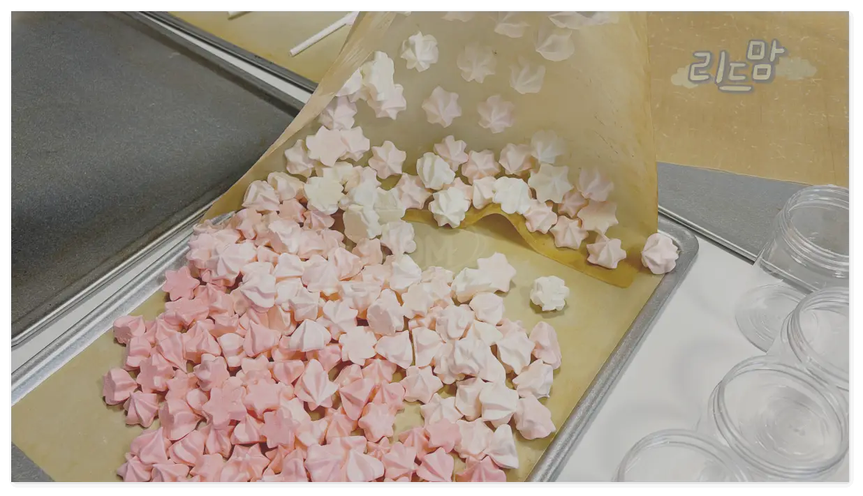 그러데이션 머랭쿠키는 언제 보아도 참 예쁩니다. 별이 쏟아지는 것 같아서 보고 있으면 기분이 좋아져요.