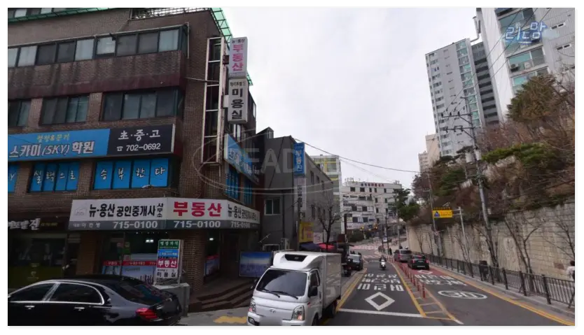 학원과 부동산 미용실등이 있는 단지 앞 상가입니다. 지하주차장이 없는 옛날 상가이고 주차가 상가 앞에 대어 있는 걸 보니 주차자리는 부족해 보입니다.