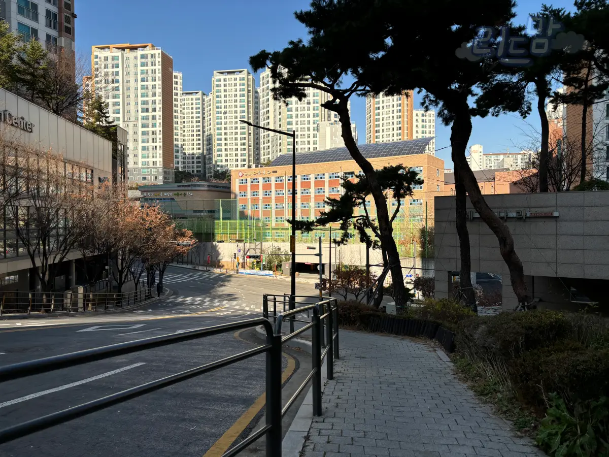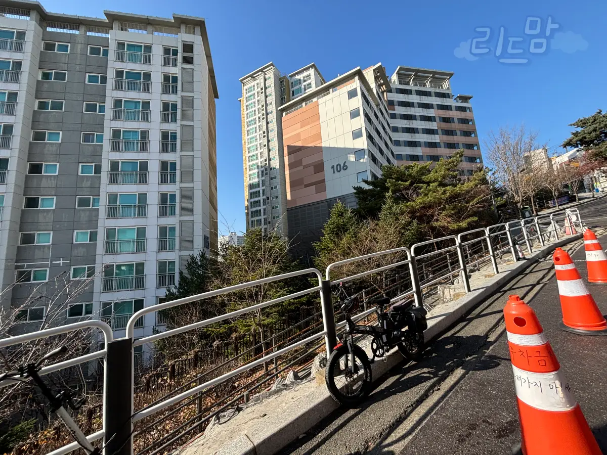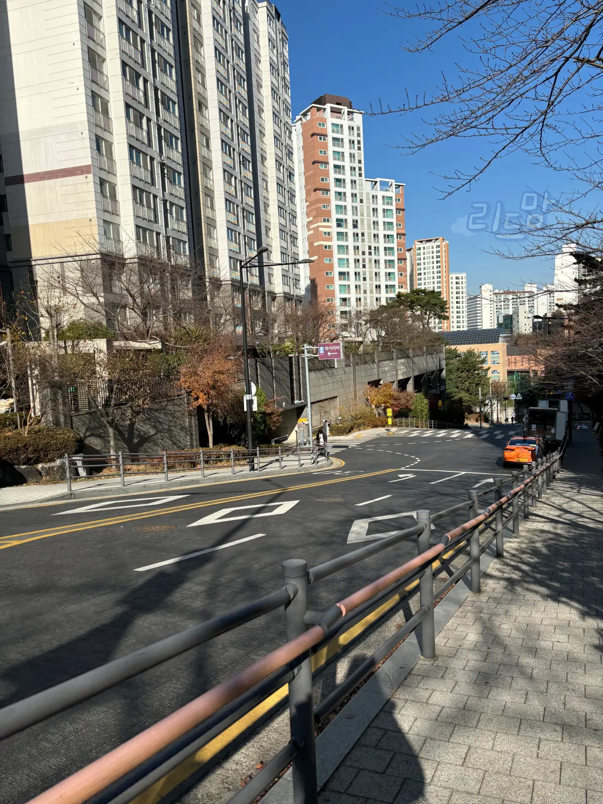 생각보다 경사가 사진에 잘 안 들어와서 실제느낌대로 찍어봤다. 실제 경사는 이런 모습. 금호자이 2차 들어가는 입구이다.