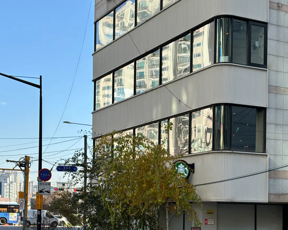 금호역 앞 스타벅스. 옛날 상가를 약간 리모델링한 모습이다.
