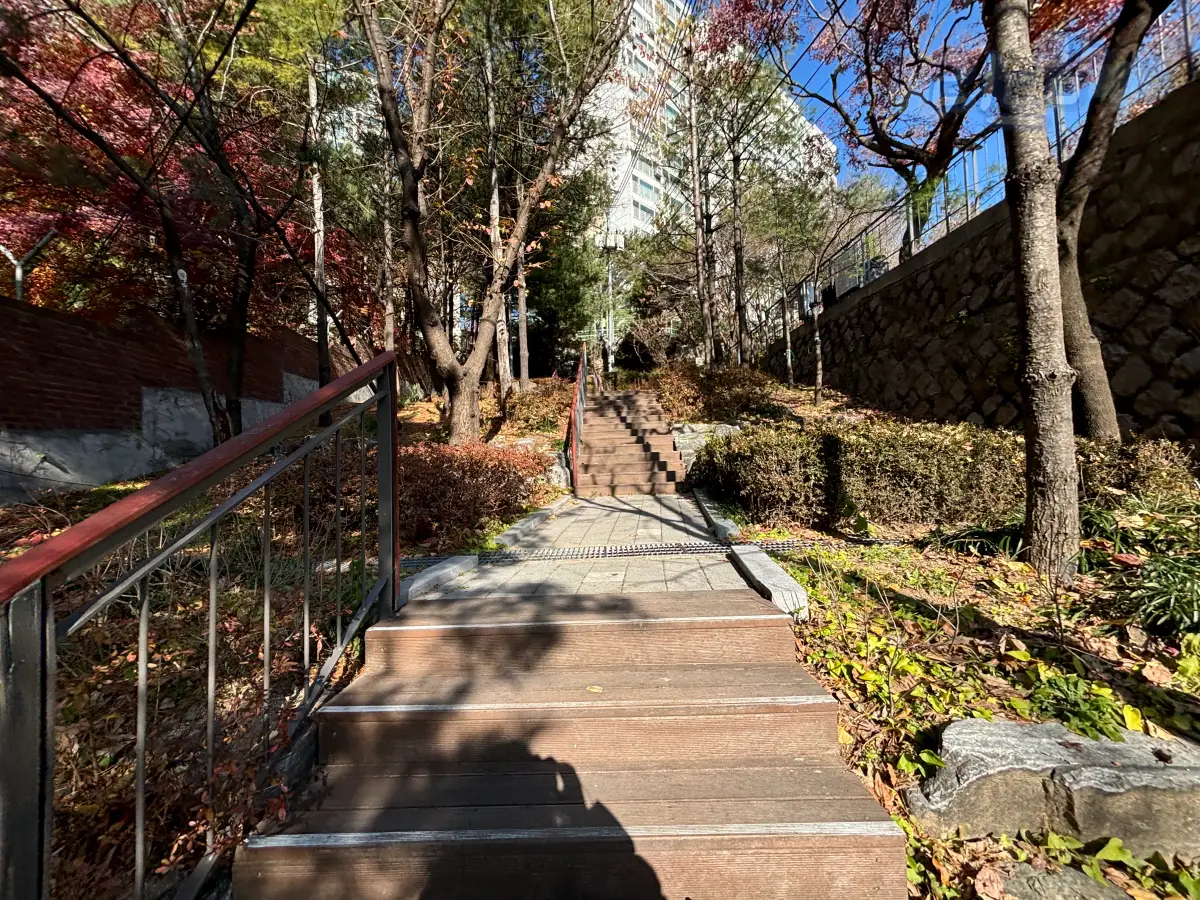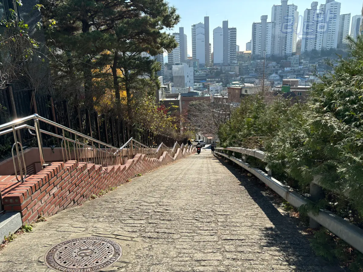 다행히 금호두산 단지 바로 옆에 오르내릴 수 있는 계단이 있었는데 여기는 정비가 잘 되어있었다. 하지만 정비가 잘 되어있다 뿐이지 가파름은 매한가지라 올라가는 내내 헉헉 댈 수밖에 없었다. 올라가는 길 옆에 도로가 널찍이 나있던 옥수리버젠 파크힐 단지에 비해 환경이 열악해 보였다.