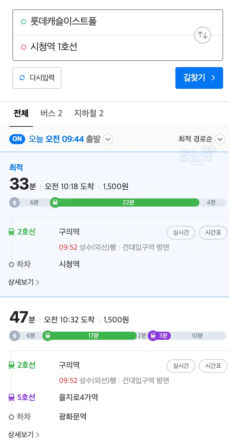 자양동 구의역이 도보 5분정도인 롯데캐슬이스트폴에서 2호선으로 시청역까지 33분이면 도착가능합니다.