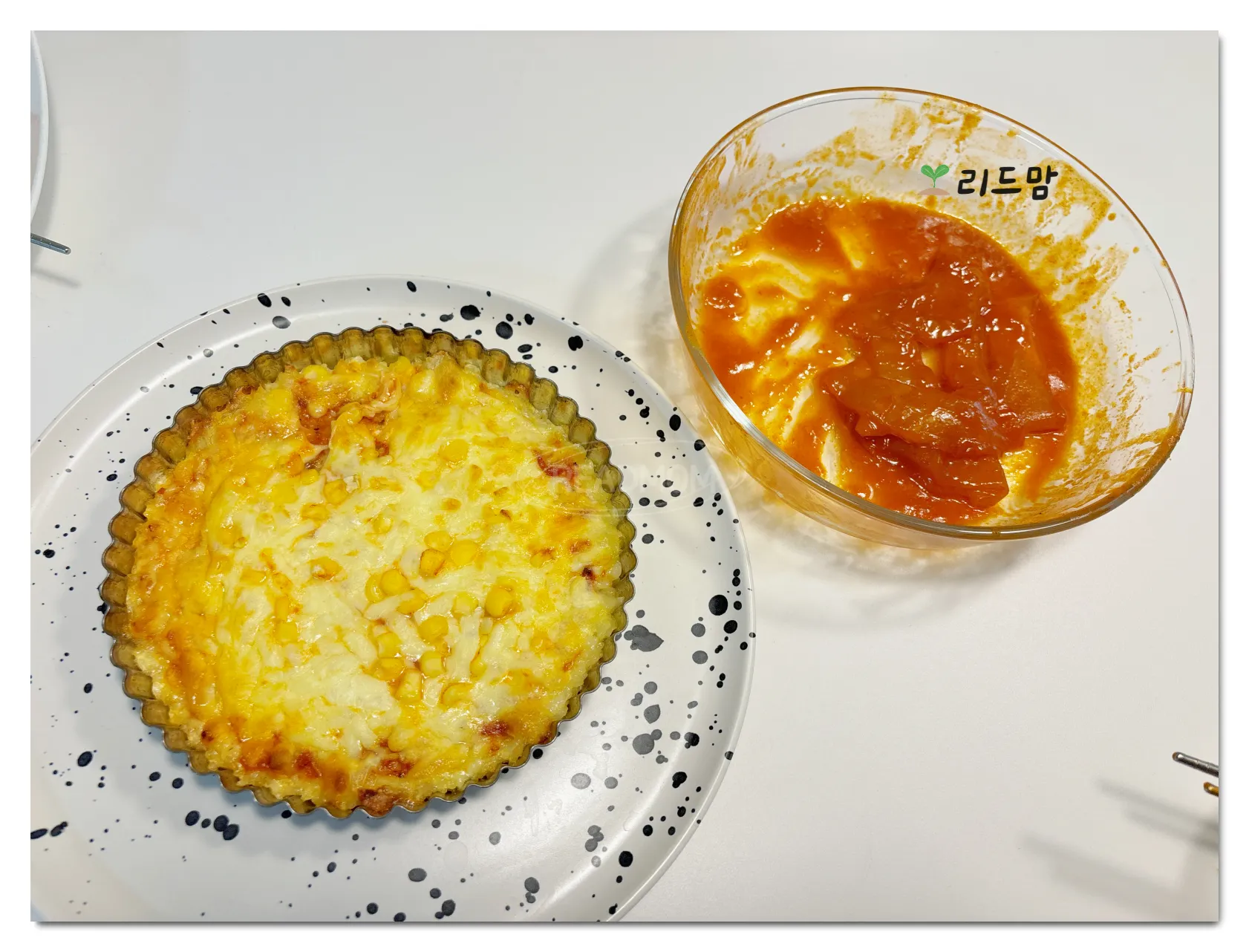 이렇게 완성되었습니다. 만들어진 떡볶이를 내어 놓으니 득달같이 달려들어 먹어버렸습니다. 사진 찍을 새가 없었네요. 치즈떡이 인기가 좋습니다. 벌써 반이 없어졌어요.