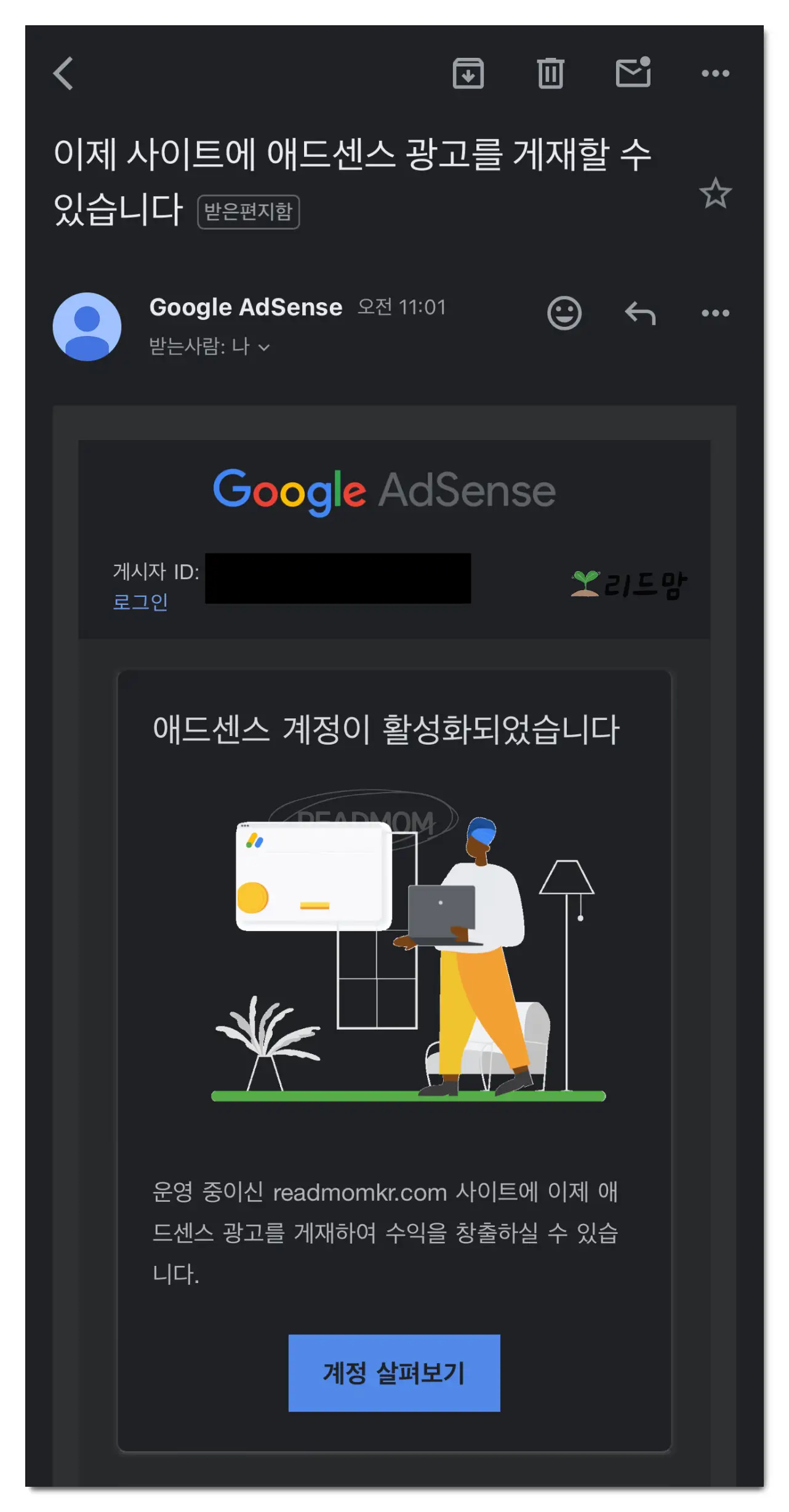 하지만 남들 다 되는 구글 에드센스 승인이 나는 왜 안되었을까? 라는 호기심이 더 강했나 봅니다. 글 쓰는 걸 좋아하기도 하고 블로그를 꾸준히 하면서 수익을 내고 싶은 욕심도 있었기에 글을 몇 개 더 꾸준히 쓰고 15개쯤 글을 썼을 때 다시 신청을 해서 결국 승인을 받았습니다.
