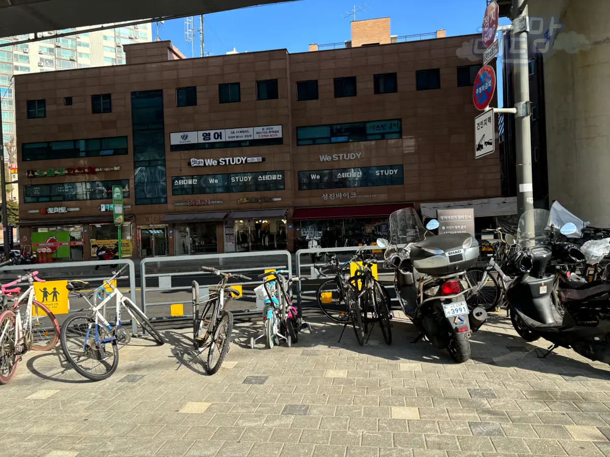 응봉역 근처 아파트들 앞 상가.