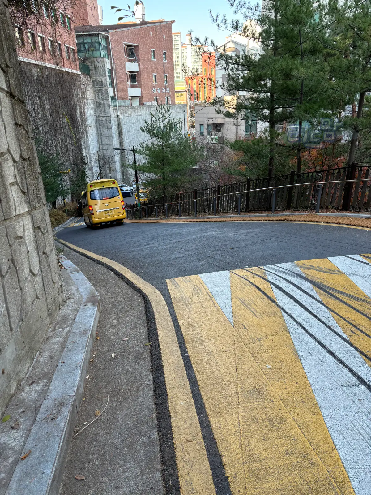 언덕 올라오는 길은 한적하고 사람이 얼마 없었는데 노란 학원차량이 몇대 서있었다. 이곳을 돌아보면서 학원차량을 유일하게 본 것 같다.